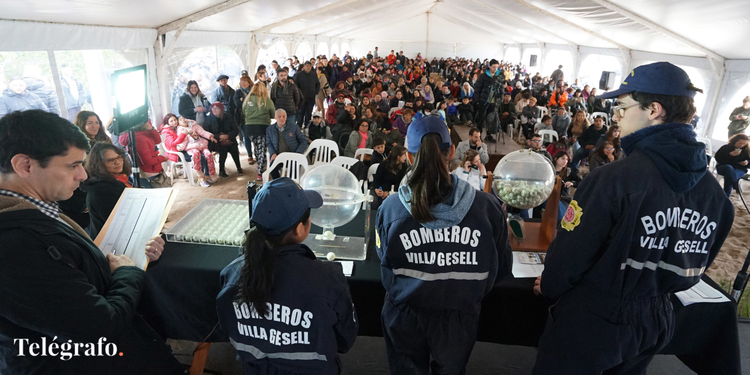 A carpa llena se sortearon más de 120 lotes en Villa Gesell y 10 casas (Fotos Ricardo Stinco).