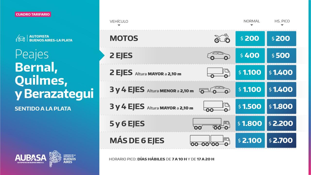 Desde inicios de este mes marzo regirán nuevos valores en las tarifas de los peajes bajo concesión de la empresa Aubasa en las rutas 2, 11 y 74 y los instalados a lo largo de la autopista entre las ciudades de Buenos Aires y La Plata.