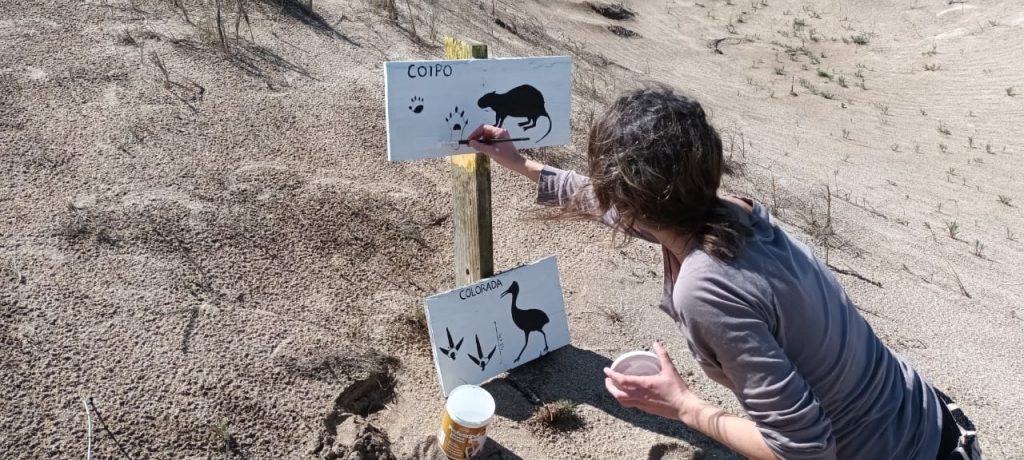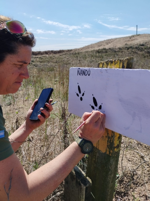 Además de la referencia a las especies y sus nombres, la cartelería dispuesta en el lugar hace foco particularmente en las huellas de los animales que conviven en la región.