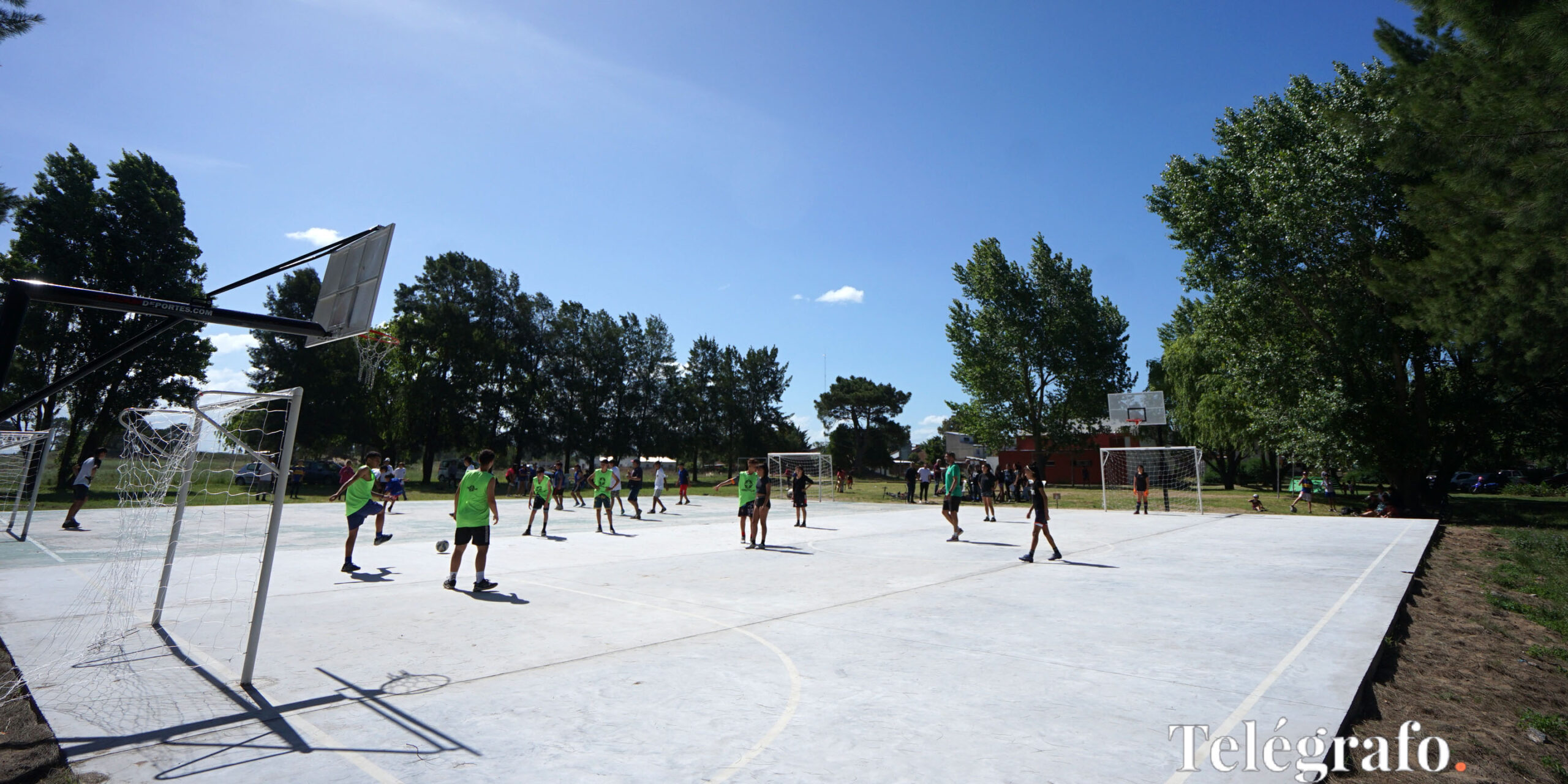 Ejecutada a través del Ministerio de Desarrollo de la Comunidad de la provincia de Buenos Aires, la obra del playón incluyó la instalación de aros de básquet, arcos y cancha de fútbol.