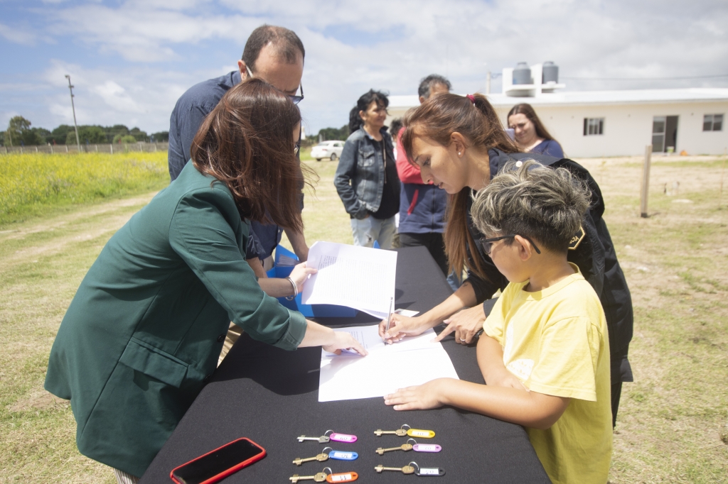 En la ciudad de Villa Gesell se entregaron nuevas viviendas para 16 policías que trabajan en el distrito en un emotivo acto junto a familiares y amigos de los adjudicatarios.
