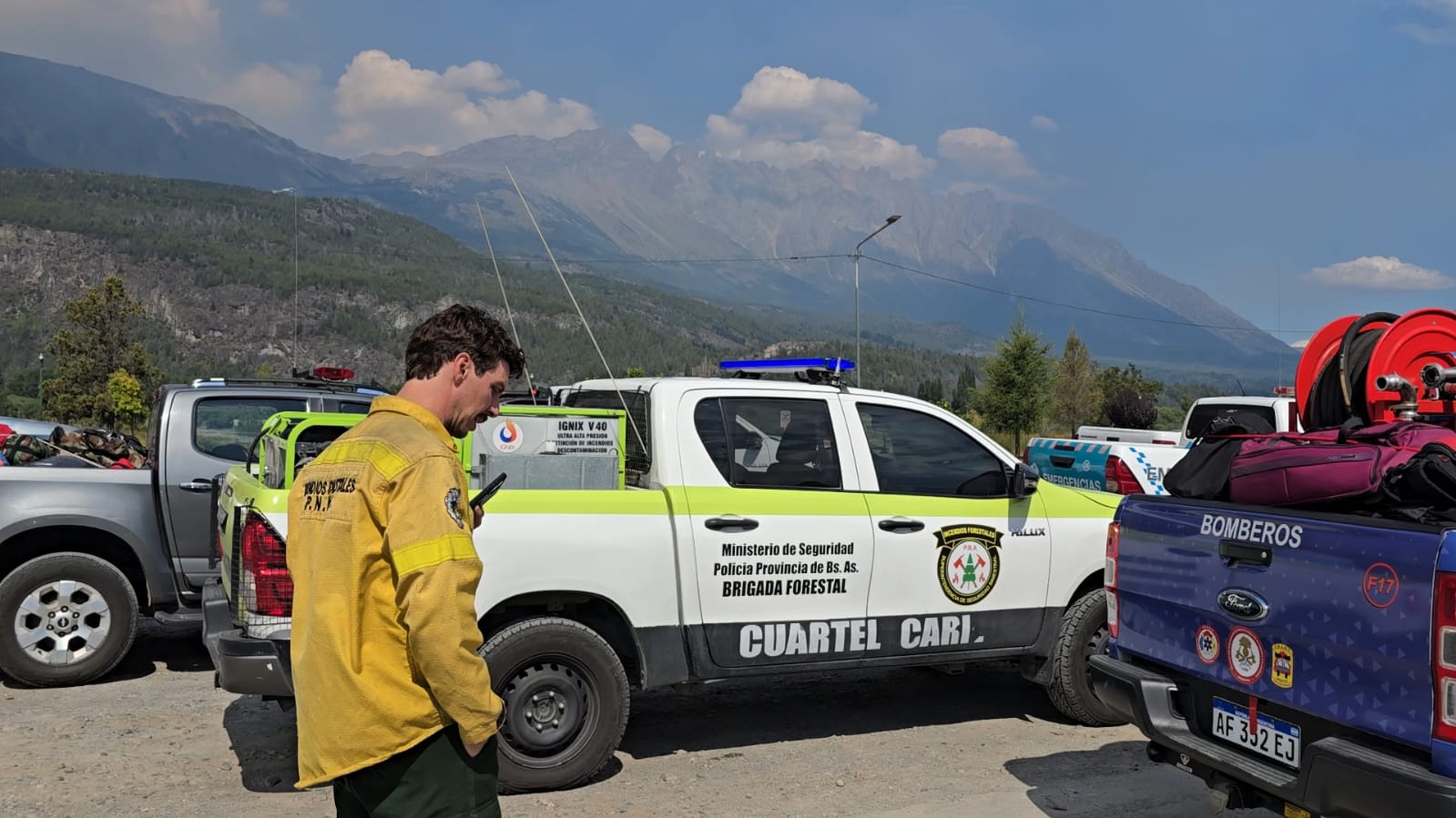Brigadistas y equipos bonaerenses en los incendios forestales de Aluminé