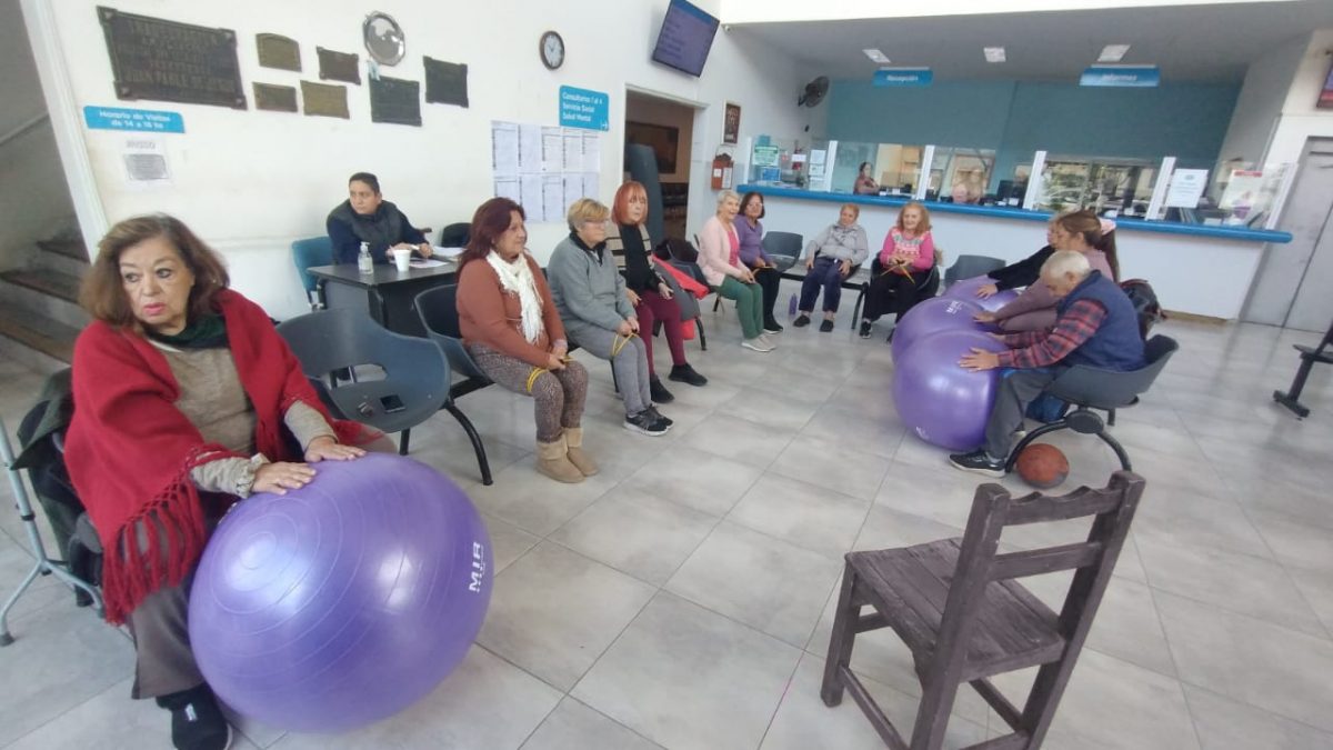 La profesora de educación física Betiana Lobos está al frente de las clases, que se enmarcan en el programa “Quererte abuelos” impulsado por el hospital.