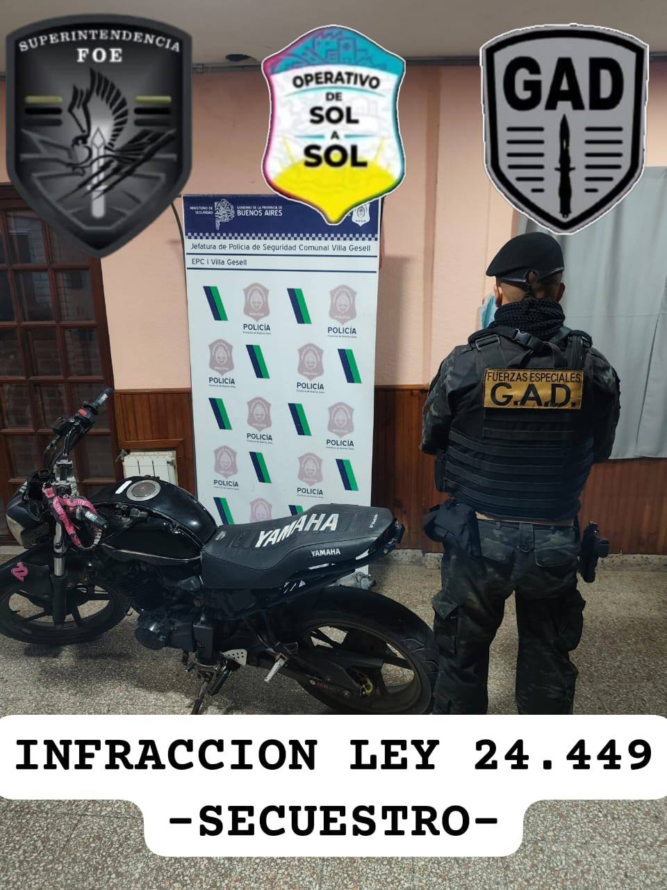 Además, se procedió a la incautación del motovehículo en el que circulaba, por infracciones a la ley nacional de tránsito, dando intervención al juzgado de faltas local.