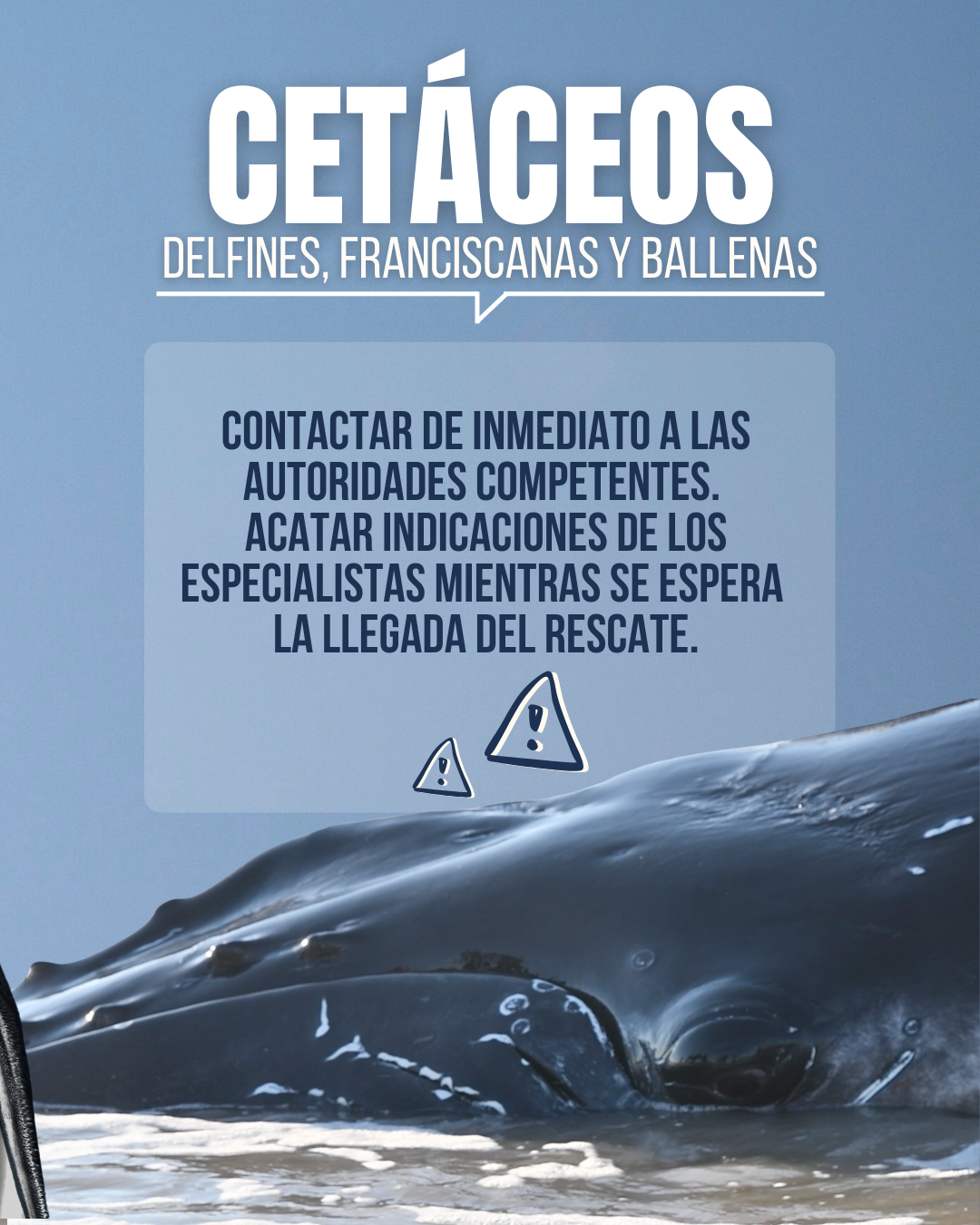 En cambio, si el animal presenta alguna herida visible, restos de plástico o redes en su cuerpo, está acompañado de una cría o se lo nota debilitado o desnutrido, es importante avisar a un centro de rescate para que realice el debido monitoreo y brinde asistencia especializada.