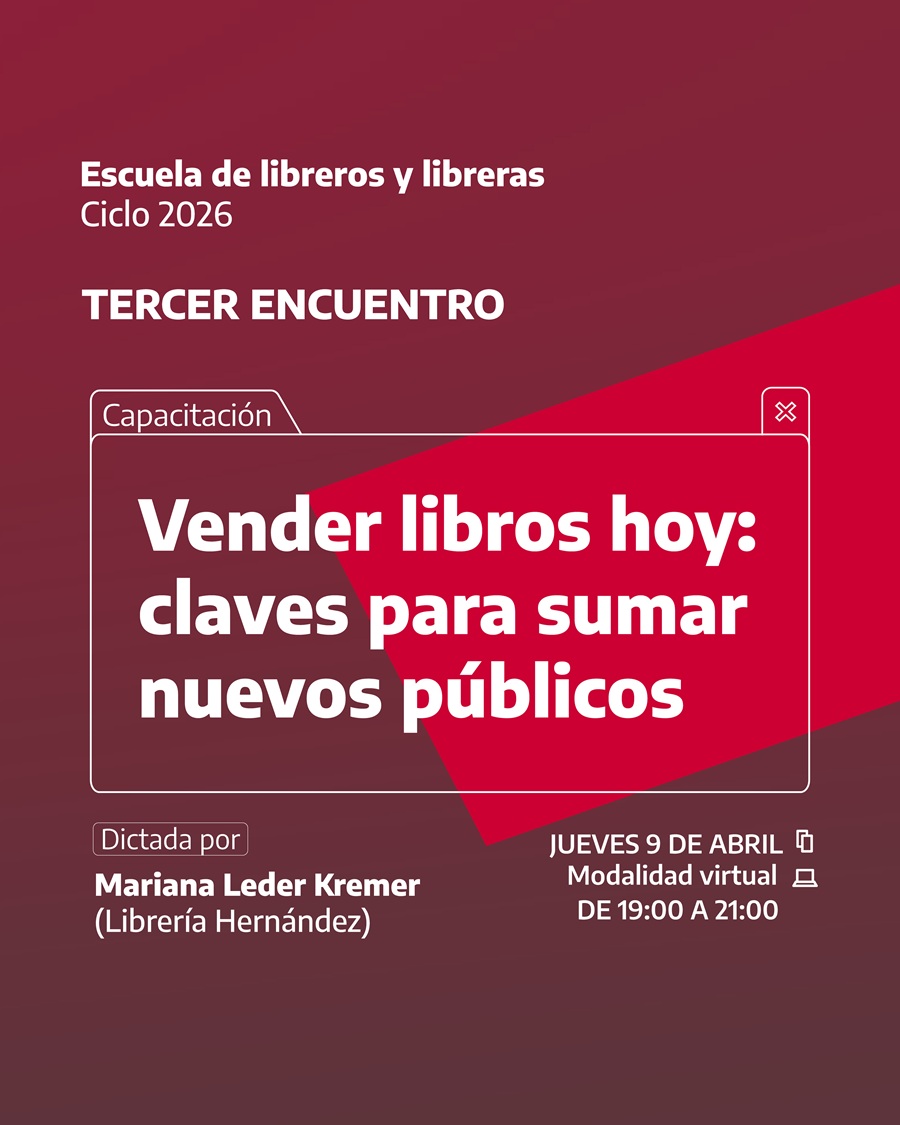 La tercera clase, del jueves 9 de abril, girará en torno a las estrategias para la venta de libros y las claves para sumar nuevos públicos, por lo que se analizarán ideas para ofrecer libros a través del entorno virtual y desde la especificidad de cada librería o proyecto librero. Lo dictará Mariana Leder Kremer (librería Hernández).
