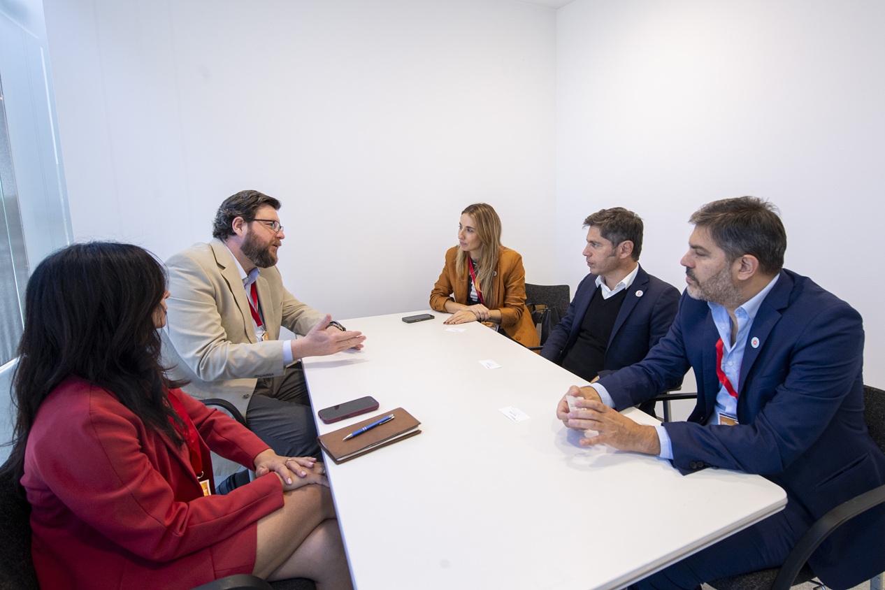 Finalmente, el mandatario bonaerense se reunió con Nancy Okail y Matt Duss, presidenta y vicepresidente del Center for International Policy, un think tank progresista que trabaja junto al Partido Demócrata de los Estados Unidos en la elaboración de proyectos. En el encuentro se acordó sostener un vínculo de intercambio.