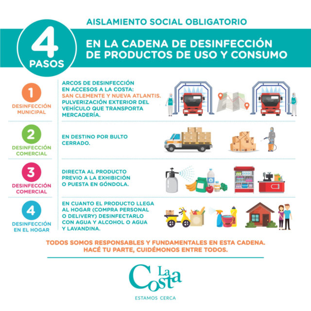 En el marco del aislamiento social, preventivo y obligatorio y para evitar la propagación del nuevo coronavirus, desde la municipalidad de La Costa han activado desde hace algunas semanas una política de difusión sobre las prácticas fundamentales a incorporar vinculadas a la desinfección de los productos que llegan al hogar.