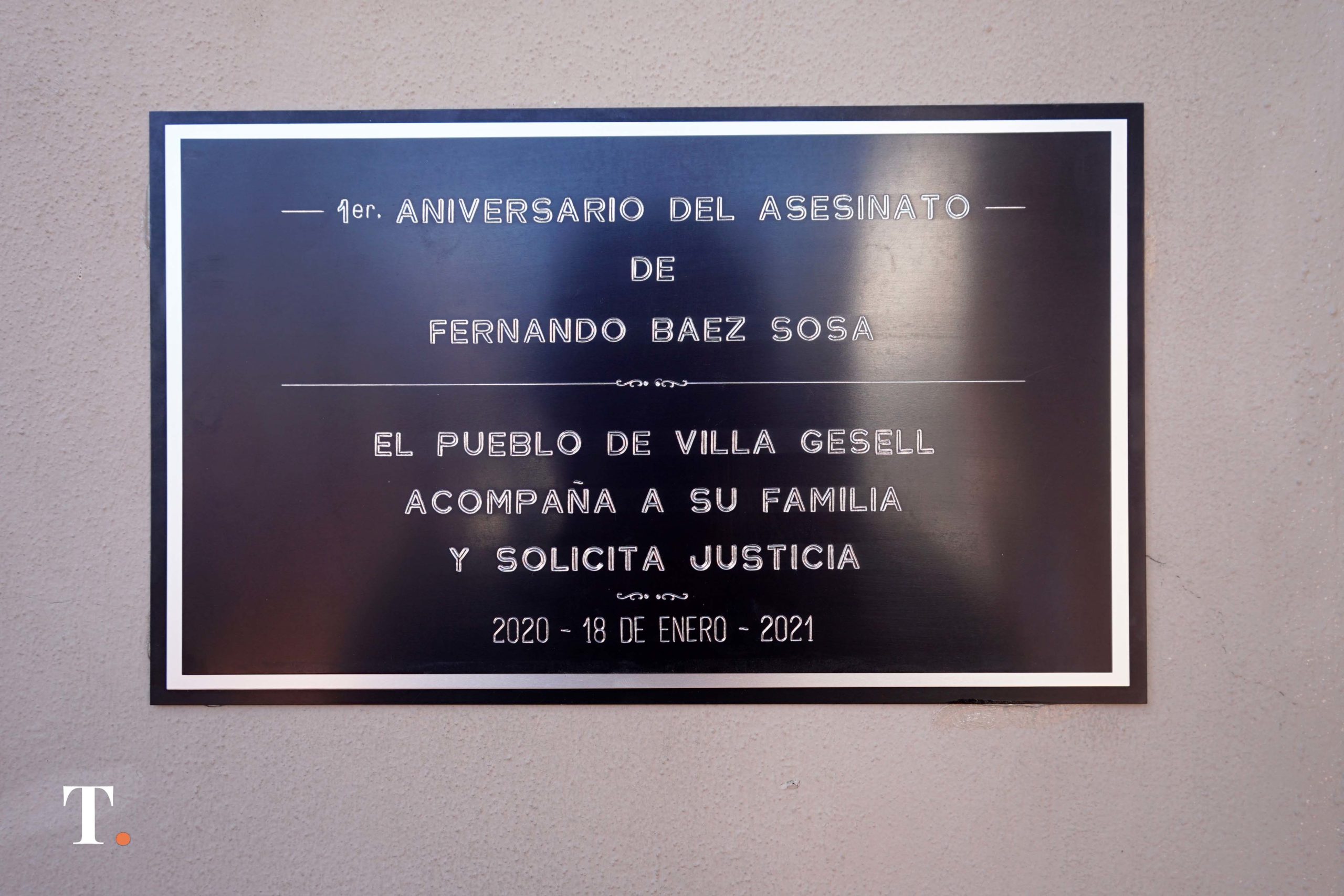 “El pueblo de Villa Gesell acompaña a su familia y solicita justicia” señala la placa ubicada frente al citado boliche, que refiere inicialmente a las fechas del año aniversario del asesinato.