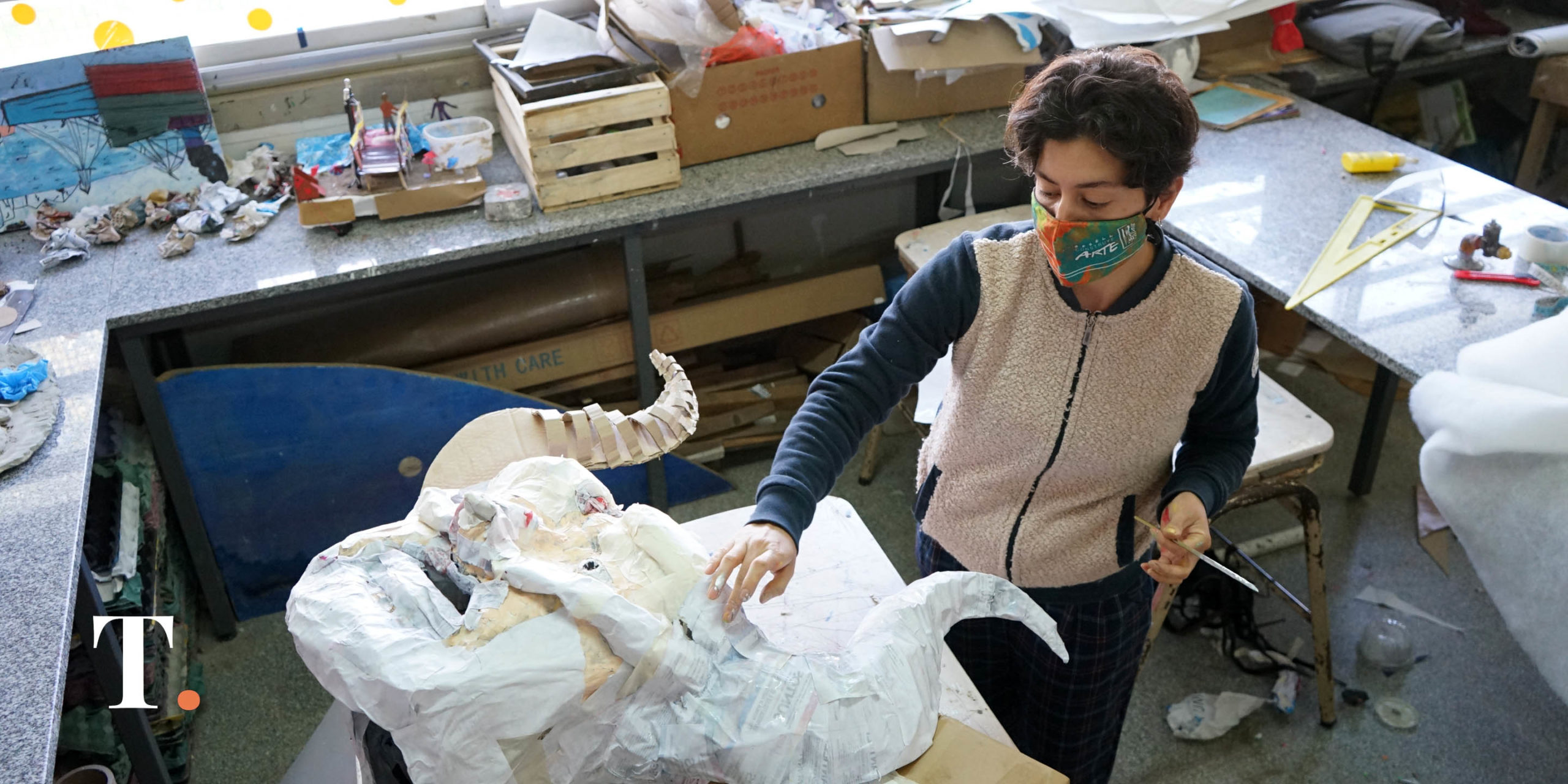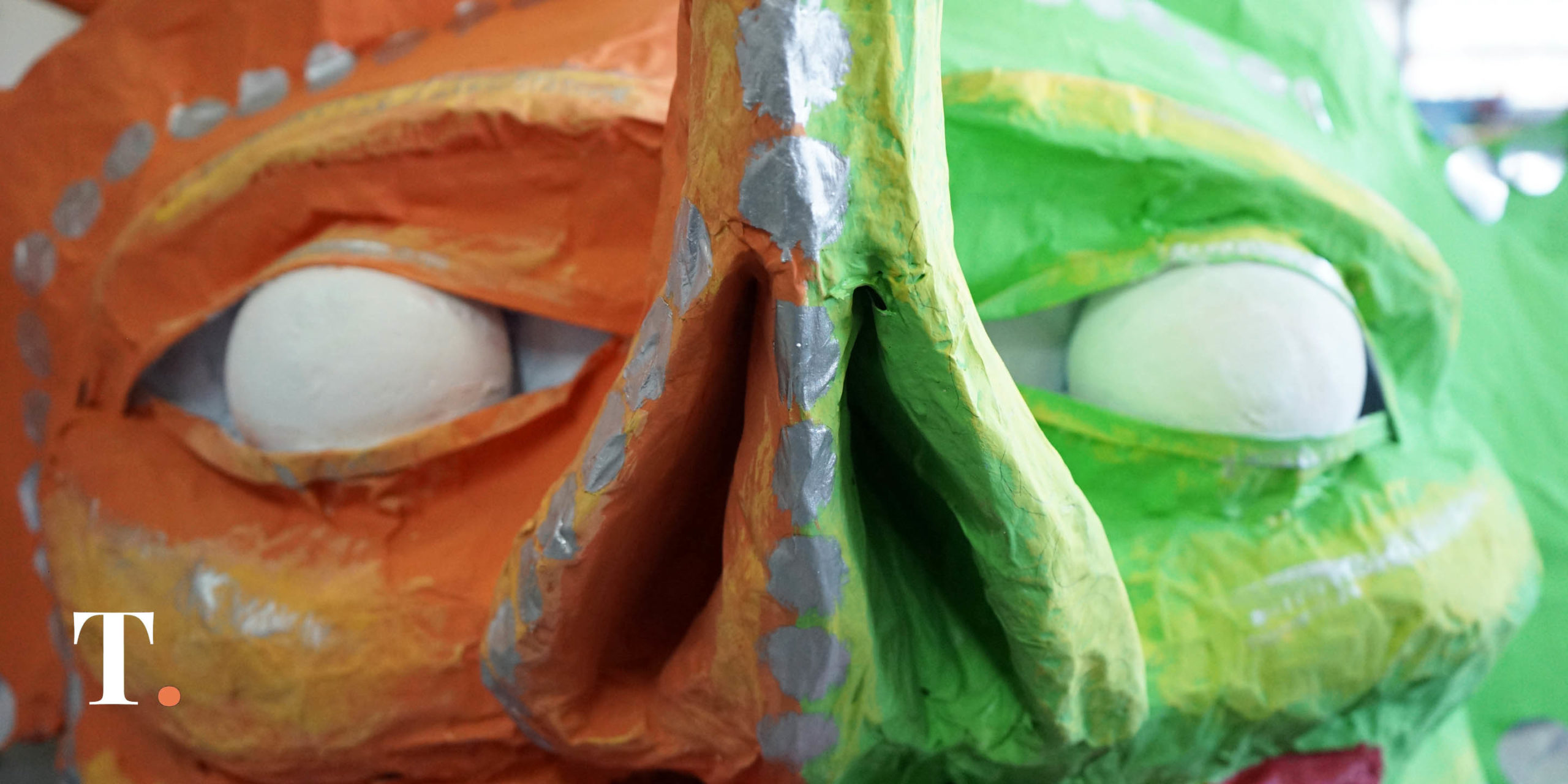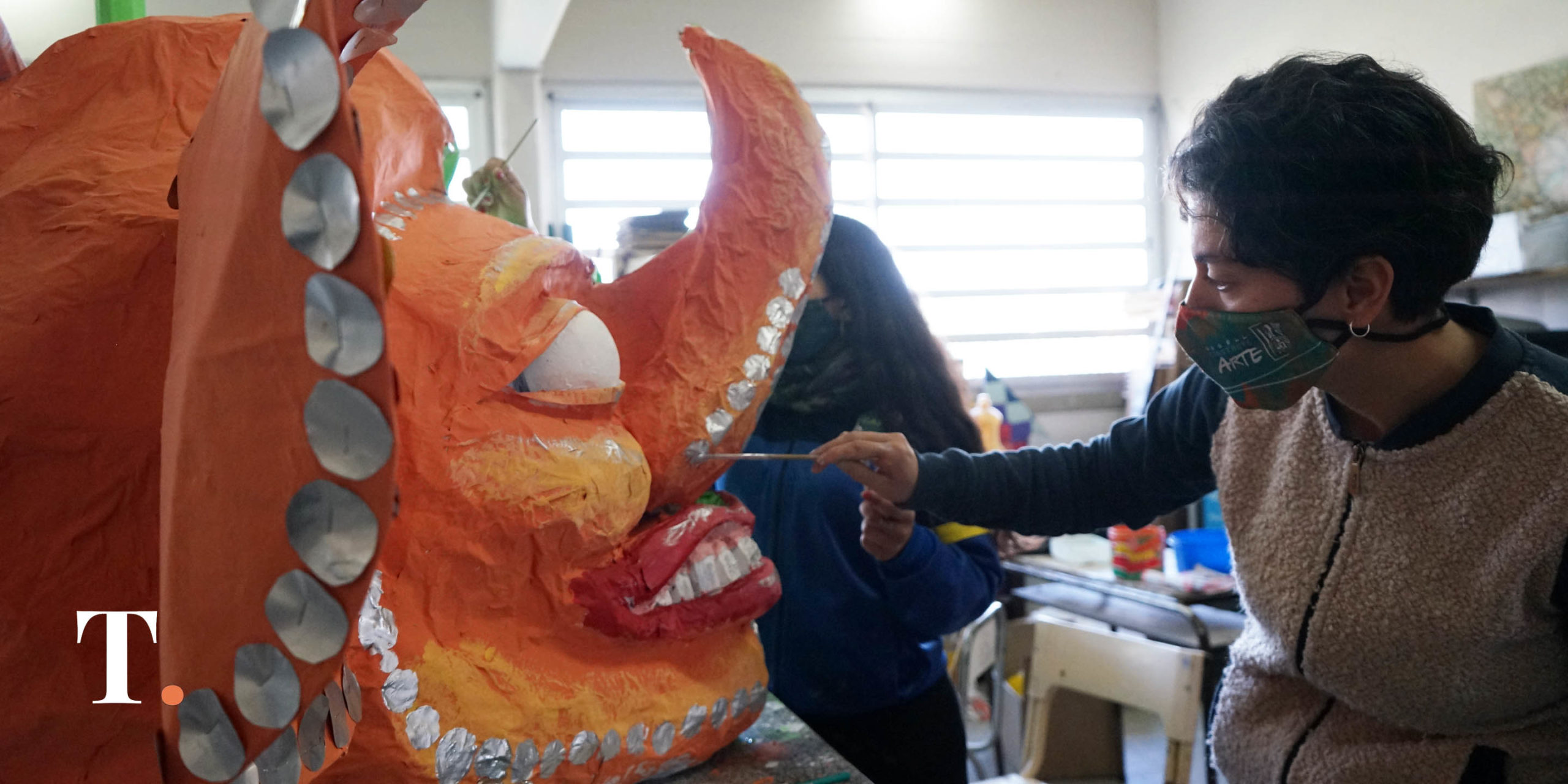Las máscaras fueron realizadas con cartapesta y material reciclado. (Fotos Ricardo Stinco)