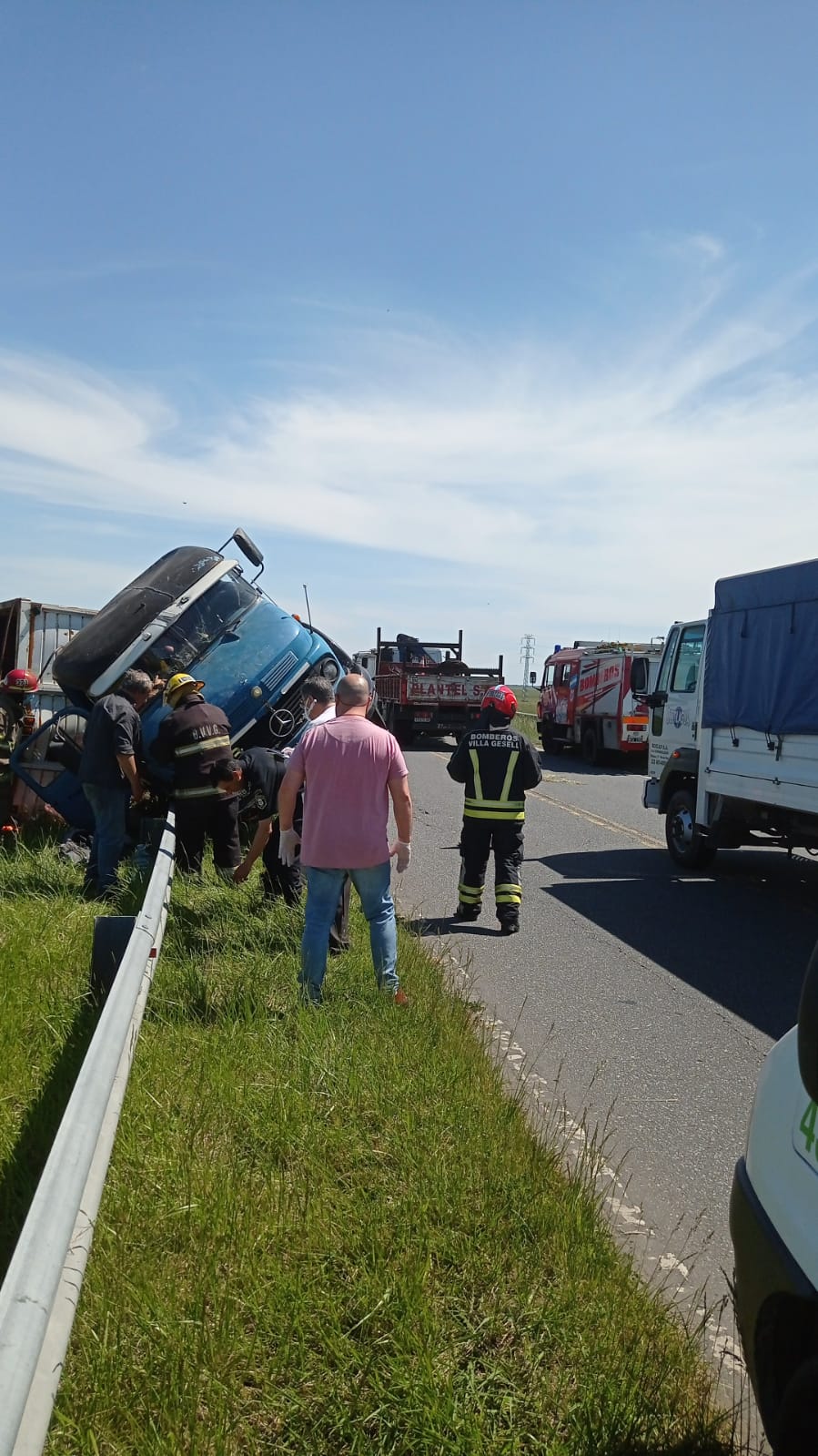 El rodado de gran porte terminó volcado sobre la banquina, sobre una de las barreras de metal que se colocan como protección en zonas peligrosas.