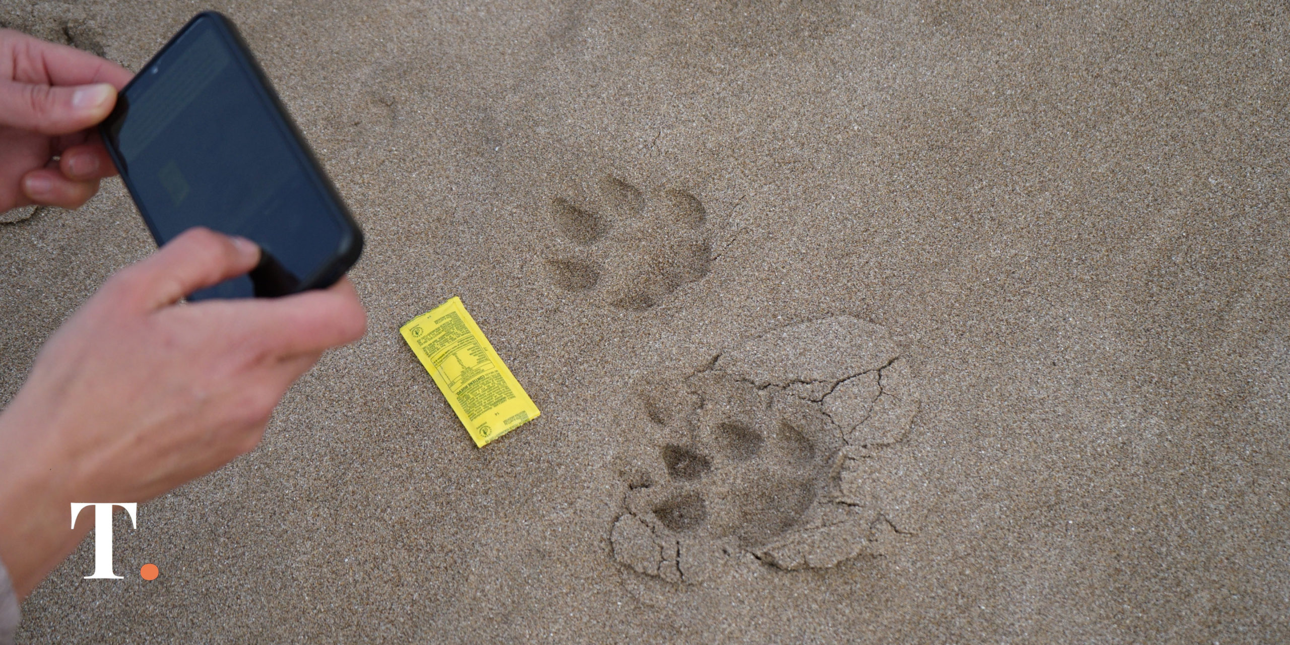 La huella de un puma en las arenas de Villa Gesell este jueves en la tarde. (Fotos Ricardo Stinco)